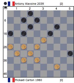 Sur le diagramme : fin de la partie Carton M - Alavoine A ( 3° partie du cht individuel), trait aux Noirs, les N jouent et gagnent.